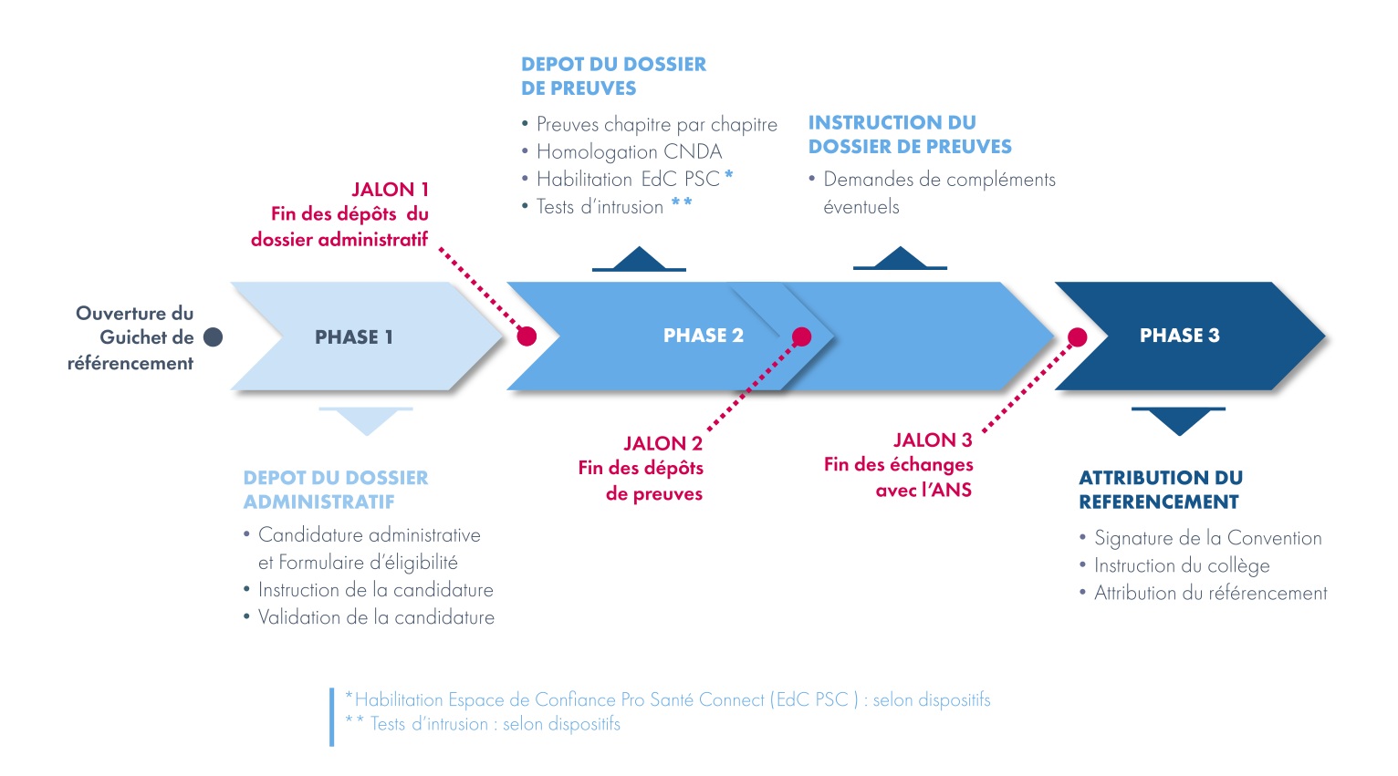 - Réserves bloquantes - non-attribution du référencement : la décision de non-attribution du référencement vous est communiquée ainsi que la ou les raisons expliquant la décision. Dans le cas où cette décision intervient avant la fin des échanges avec l'ANS (phase 2), vous pouvez redéposer les preuves non-conformes.